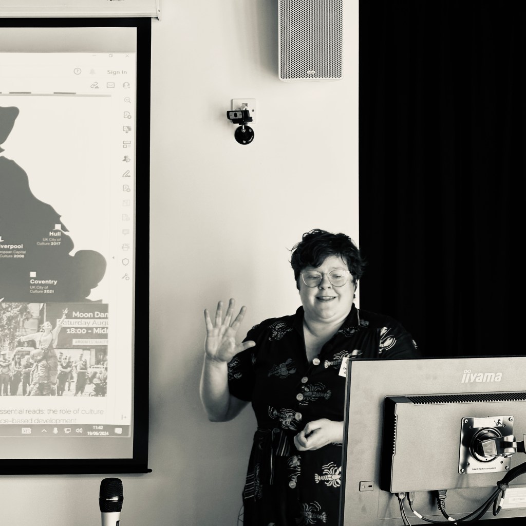 Emma McDowell presented her work on “Creating space for collective learning: Centre for Cultural Value.” Dr Emma McDowell from the Centre for Cultural Value will discuss the work behind the recently-launched Evaluation Learning Space, which uncovers learning hidden in evaluations from the cultural sector. As a tool to share insights and knowledge to support cultural organisations and practitioners, the resource hub has placed an initial focus on what we can learn from the evaluations of UK-based Cities and Capitals of Culture. Building on the work of the Centre in evaluation practice methodologies and training, these initial resources shed light on who was involved, what methods and frameworks were used and the challenges evaluation teams faced.