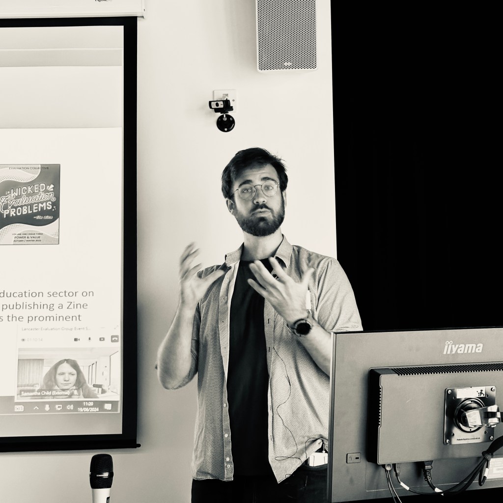We welcomed Nathaniel Pickering, Samantha Child, Jonathan Schulte and Emma McDowell to the third of the Lancaster Evaluation Group’s (LEG) hybrid seminar series, discussing “Exploring spaces for collective learning in evaluative practice.”